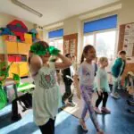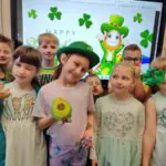Przez ostatni tydzień marca, na lekcjach języka angielskiego w każdej klasie działo się mnóstwo. Uczniowie z ogromnym zaangażowaniem uczestniczyli w różnorodnych aktywnościach – zarówno plastycznych, jak i ruchowych. W salach lekcyjnych nie brakowało kreatywnych prac, podczas których dzieci tworzyły własne koniczynki, kapelusze skrzatów czy kolorowe ilustracje związane z Irlandią.