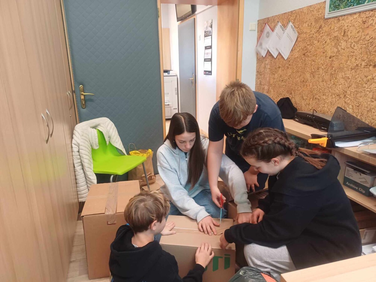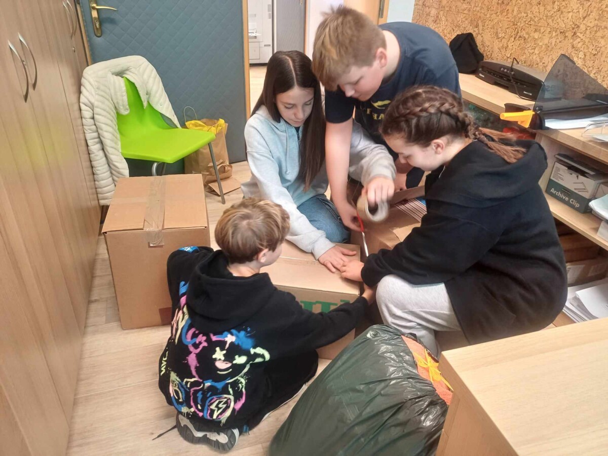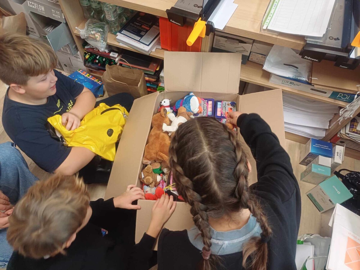 Od dnia 25.10 – 07.11.23r. uczniowie naszej szkoły zbierali dary w ramach akcji „Zostań Mikołajem”. Wszystkie przyniesione rzeczy miały trafić do dzieci z Ukrainy w formie prezentu mikołajkowego. Ilość przyniesionych darów przeszła nasze najśmielsze oczekiwania. W dniu 08.11.23 r. uczniowie klasy szóstej pakowali przyniesione dary do wielkich kartonów, by mogły zostać przetransportowane. 9.11.2023 dary zostały przekazane siostrze Przełożonej z Krysowic na